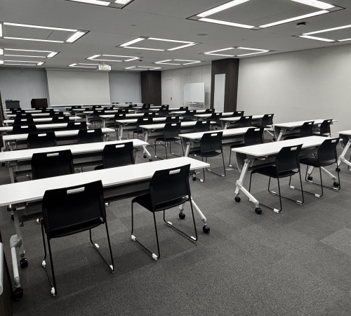自社利用だけでなく、スペースレンタルを見越した会議室のインフラ構築。音響も対面セミナーだけでなくオンライン講義にも最適にご利用いただける設備を導入。幅広いご利用スタイルをお客様と共に作りました。