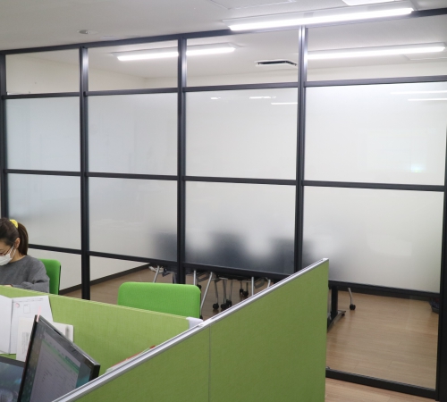 増え、スタッフも増員し事務所が手狭になったので移転&再リニューアルしたいとの要望を頂き、「オフィスレイアウト設計、OAフロア、会議室設置、電話機、LAN工事、LED照明化」を行いました。